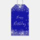 Für eine mädchenhafte und glamouröse Geburtstagsparty (oder jedes Alter). Ein königsblauer Hintergrund mit eleganten Imitaten silberner Staub. Auf der Vorderseite der Text: Happy Birthday Back: Ihre Notiz und Ihr Name(e) Verwenden Sie einen generischen Text, damit Sie ihn für mehrere Geburtstage verwenden können