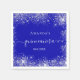 Eine Serviette für eine mädchenhafte und glamouröse Quinceañera, 15. Geburtstagsfeier. Ein königsblauer Hintergrund mit eleganten Imitaten silberner Staub. Personalisieren und einen Namen hinzufügen. Weiße Buchstaben. Quinceañera ist mit einem modernen handgeschriebenen Stil-Skript mit Swashes geschrieben.