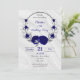 elegante romantische königsblaue Blumen und silbergraue Blätter botanischer Kranz-Luxus Geburtstagsfeier Einladung Die Glitzer Details werden simuliert