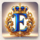 Ein üppiges blaues Monogramm mit dem Buchstaben E, umrahmt von aufwendiger goldener Ornamentik und einer königlichen Krone, wodurch ein kühnes, hochwertiges Emblem entsteht, das ideal für Luxusmarken, Einladungen und klassische Designthemen ist.