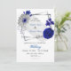 Königlich blaue Rose und Lilien mit silberner, zarter Blume auf der silbernen geometrischen Rahmen Hochzeitseinladung . Die Einzelheiten des Glitzer werden simuliert