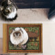 Fluffy Cat hat Zuhause einen widerstrebenden neuen Freund in eine Maus gebracht, die bettelt, bleibe oder verlassen.