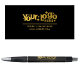 Ein einfaches und stilvolles Business-Stift-Design mit schwarzem Hintergrund. Passen Sie Ihr goldenes Firmenlogo und Ihre Details an und machen Sie es zu Ihrem eigenen. Ein ideales Design für geschäftliche Werbeaktionen, Büromaterial, Kundengeschenke, Business Marketing und Werbung.