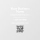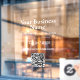 Ein weißer Firmenname Branding Fenster Dekorieren und Fensterklammern mit Ihrem Firmennamen, Slogan oder Tagline, Telefonnummer, Website und individuellem QR Code. Ein personalisiertes Schaufenster, ideal für Schaufenster und Schaufenster. Ideal für einen Geschäftshändler, der sein Fenster mit seinem Firmennamen und seiner Markendarstellung dekorieren möchte.