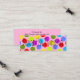 Random bunt polka Punkte auf einem rosa Hintergrund mit Platz für Kontaktdaten für Ihr Kind, um Eltern von ihrem Spieldatum geben.