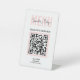 Weibliche QR-Code-Menü-Zeichen in rot-weiß, mit Platz für Ihren Firmennamen, Menü QR-Code-Link und soziale Medien Details. Dieses berührungslose Menüzeichen besticht durch modernes Design und eignet sich perfekt für jeden Geschmack oder jede Art von Menü. Fügen Sie einfach Ihre Menü-URL hinzu und machen Sie Ihr Tisch Top-Menü-Zeichen für Ihr Café oder Restaurant.