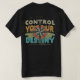 Ein dynamisches T - Shirt-Design mit dem Begriff "Kontrolle dein Schicksal" in einem lebendigen, farbenfrohen Schriftart. Abstrakte Formen und Linien rund um den Text symbolisieren den Power der Wahl und die Entschlossenheit, den eigenen Pfad zu formen.