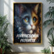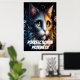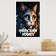 Ein faszinierendes Bild einer Katze mit auffallenden blauen Augen, das direkt auf den Betrachter blickt. Das Katzen-Fell ist in kräftigen Tönen dargestellt und zeigt sein elegantes und königliches Aussehen. Kontrolle im Gange