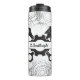 Diese Grafik zeigt ein zentrales Emblem mit einem Kolben und einem Schraubenschlüssel, überkreuzt über einen Gang, mit einem leeren Banner für die Anpassung. Das gesamte Design wird in schwarzer Kontur mit weißer Füllung gerendert und bietet eine saubere, aber feine Ästhetik. Der Hintergrund ist ein dichtes, kompliziertes Muster verschiedener Getriebe und mechanischer Bauteile, auch in Kontur, das ein visuell reichhaltiges und kohärentes Industriethema schafft.