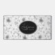 Ein wunderschönes Muster handgezeichneter Konturen in Grautönen auf weißem Hintergrund wird durch ein schwarzes Etikett ergänzt, um den Text zu halten. Das hier abgebildete Schreibtischpolster enthält auch einen handgeschriebenen Text. Suchen Sie die ID939, um alle Produkte in diesem Design-Set einschließlich der passenden Visitenkarten zu sehen.
