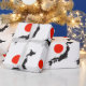 Japan kartografiert Silhouette in schwarz mit rotem Kreis von der japanischen Flagge auf einem weißen Hintergrund in einem Muster.