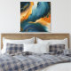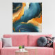 Dieses raffinierte abstrakte Kunstwerk fängt die stille Luxus der fließenden Bewegung ein, bei der tiefes Ozeanblau auf geschmolzenes Gold in einem langsamen, eleganten Tanz trifft. Glatte, fließende Formen kräuseln sich über die Komposition wie polierter Stein, flüssiges Metall oder Unterwasserströmungen und erzeugen ein Gefühl von Tiefe und natürlicher Harmonie. Die goldenen Akzente erscheinen organisch in die Blautöne eingebettet und fügen Wärme, Reichtum und eine subtile Opulenz hinzu.