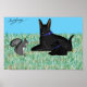 Mister Eichhörnchen in tiefen Gesprächen mit Pop und junge schwarze deutsche Hirten.