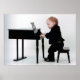 Baby spielt Baby Grand Piano mit großer Konzentration.