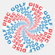Genießen Sie dieses textbasierte grafische Design der Wörter "Disk Golf", die sich um ein zentrales, kreisförmiges Muster drehen...