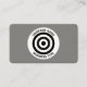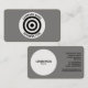 Eine Visitenkartenvorlage mit einem Ziel-ähnlichen Symbol aus konzentrischen Kreisen. Das Symbol wird in einen weißen Kreis mit kurvenförmigen Firmennamen und Geschäftstyp platziert. Name und andere Kontaktdaten auf der Rückseite mit dem weißen Kreisfeld, ohne das Zeichen mit dem Namen und dem Titel des Auftrags, die in der links Seite angeordnet sind.