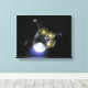 Konzept einer Crew, die von der Mondoberfläche in einem Teil eines Mondlander mit Blastoff abstrahlt.