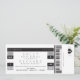 Passen Sie dieses lustige Ticket an und verkünden Sie Ihr Hochzeitsdatum auf fett und einzigartig! Klassisch schwarz-weiß mit Akzenten von Grau. Eine Mischung aus digitalen Schriftart für ein wahrhaftiges Konzert-Ticket-Gefühl. Drucken Sie auf der Rückseite zusätzliche Reise-, Unterkunfts- und/oder UAWG.