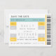 Passen Sie dieses lustige Ticket an und verkünden Sie Ihr Hochzeitsdatum auf fette und einzigartige Weise! Töne von Sonnenschein Gelb und Aqua Blue mit Akzenten von Schwarz. Ein Mix aus digitalen Schriftart für ein echtes Konzert Ticket-Gefühl.