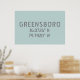 Minimalistisches Poster mit Greensboro NC Längen- und Breitengrad-Dezimalkarte Koordinaten im modernen grauen industriellen Schriftart auf hellblauem Hintergrund