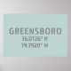 Koordinaten der Greensboro NC Latitude und Longitu Poster