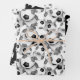 Diese spaßigen Packpapierblätter für Fußballspieler oder Fans haben drei individuelle, sich ergänzende Muster — Blatt 1 zeigt ein 3D-Muster aus schwarzen, grauen und weißen Fußballbällen unterschiedlicher Größe - Blatt 2 hat einfache weiße Fußball-Formen auf individuell einstellbarem schwarz - Blatt 3 hat ein einfaches Spiegelmuster aus schwarzen, grauen und weißen Fußballbällen auf anpassbarem Weiß - von katz_d_zynes