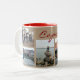 Tasse, die Collage von Fotos eingelassenem Kopenhagen (einschließt Slotsholmen, Rosenborg Schlitz, die kleine Meerjungfrau, Nyhavn und das Ändern des Schutzes bei Amalienborg) und von Text "Kopenhagen kennzeichnet"
