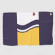 Golf Handtuch mit einem Design mit der Flagge von South Bend, Indiana. Eine weiße, blaue und gelbe Flagge mit einem roten Stern