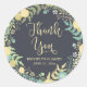 Hochzeitsaufkleber mit runder Tafel und gelbem Kranz und anpassbarer Text auf dunklem Hintergrund