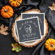 Maßgeschneiderte bedruckte Halloween-Party-Papierservietten für unsere Vintage Skull-Kollektion. Personalisieren Sie es mit Ihrem Familiennamen, Party-Details oder anderen benutzerdefinierten Text um eine Not leidende Vintage Schädelillustrierung und Scrollornament auf einem kohlegrauen Chalkboard Hintergrund. Verwenden Sie die Designtools, um die Schriftart und Farben des Textes zu bearbeiten und eigene Fotos und Texte hinzuzufügen, um Ihre eigene, einzigartige Halloween-Party-Dekoration zu erstellen.