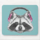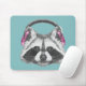Dieses Ausrüstungsbeschreibungen ein niedlicher Raccoon, der rosa Kopfhörer trägt.