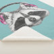Dieses Ausrüstungsbeschreibungen ein niedlicher Raccoon, der rosa Kopfhörer trägt.