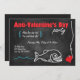 Spaß Einladungen zum Feiern eines Anti-Valentinstag-Party, entworfen in einem schwarzen Chalkboard-Stil mit einem Piranha nach einem gebrochenen Herz auf einem Haken.
