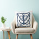 Das Kopfkissen des Kopfkissens wird in der Farbe Marine und Weiß mit einem maritimen Ankerprint angezeigt. Passen Sie dieses Objekt an oder kaufen Sie, wie es ist. Lizenziertes Bild
