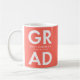 Moderne Abschluss Kaffee-Tasse mit "Grad" in fett weißer Schrift mit Korallenhintergrund oder Farbe Ihrer Wahl. Personalisieren Sie die Abschluss-Tasse, indem Sie den Namen und Abschluss des Absolventen Jahr. Die Kaffee-Tasse ist ein großartiges personalisiertes Abschluss-Geschenk für Absolventen der Highschool und der Uni!