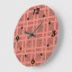 Koralle mit schwarzem geometrischem Muster Große Wanduhr