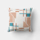 Das abstrakte, geometrische Design in Form und Linien von hellen Korallenorangen mit Aqua-Blau-, Rost- und Taupe-Elementen, die in einem senkrecht zueinander stehenden Muster angeordnet sind, alles auf einem weißen Hintergrund, der einen zeitgenössischen Look im Geist des modernen Stils des Mitteljahrhunderts projiziert. Die schlichten Linien und die kontrastfarbenen Farben wirken puristisch und minimalistisch. Sie verleihen Wohnbereich, Schlafzimmer, Arbeitsbereich, Terrasse oder Innenhof-Dekoration in farbenfroher, polierter und stilvoller Qualität. Dieses Gefühl der Wärme, ein entspanntes und friedliches Ambiente für Ihren persönlichen Zuhause-Raum, ein Ort zum Entspannen und Kontemplation, abseits der geschäftigen Alltagswelt. Dieses Akzent, das in eine Vielzahl von Stilrichtungen passt, bietet viel dekoratives Potenzial, von Retro/Vintag über rustikale Ranch bis hin zu modernem städtischem Loft oder Hochhaus.
