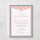 Eine formale Hochzeitseinladung, die ein elegantes kennzeichnet, blühen Strudel. Gezeigt im Grau und in der Koralle.