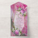 Korallen, Gras und Peony-rosa Blüten All In One Einladung