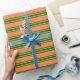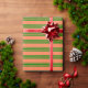 Dieses Verpackungspapier-Design weist ein Muster von Streifen mit Farben wie Korallen und Grün auf. So ein Umschlagpapier kann zum Umpacken von Geschenken oder Geschenken verwendet werden, die zum Feiern eines Geburtstages, einer Hochzeit, eines Jahrestages oder eines anderen Ereignisses gegeben werden.