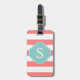 Korallen-und Minzen-Streifen-Monogramm Gepäckanhänger