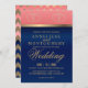 Korallen- und Navy-Blau mit goldenen Herzen - Einl Einladung
