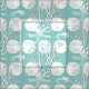Weiße und hellgrüne Stoffe mit einem Unterwasserdruck. Weißer Sand, Meerpferde, Seesterne und Korallen bilden ein nautisches, nahtloses Muster. Ändern Sie die Hintergrundfarbe in eine beliebige Farbe, indem Sie die Schaltfläche "Anpassen" verwenden.