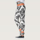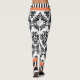 Schwarz-Weiß-Damast-Muster und Streifen Leggings. Ein niedliches Retro-Schwarz-Weiß-Damast-Muster, ein Korallenband und schwarz-weiße Streifen oben und unten schmücken diese coolen Leggings.