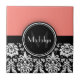 Korallenbeschriftung Schwarz-weiß Damask Monogram Fliese