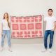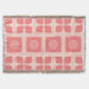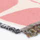 Moderne Ästhetik, vorwiegend in Korallenrosa und hellcreme oder cremefarben. Das Muster besteht aus abwechselnden Reihen mit zwei unterschiedlichen Mustern: Eine Reihe besteht aus quadratischen Blöcken mit kreisförmiger Form in der Mitte, die andere Zeile verfügt über ineinander greifende "Pluszeichen" oder Kreuzformen, die durch den negativen Raum zwischen vier viertel kreisförmigen Elementen erzeugt werden. Der Gesamteindruck ist geometrisch und grafisch.
