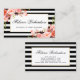 Elegante Korallenfloral- und Goldrahmen sowie Schwarz-Weiß-Streifen-Visitenkarte