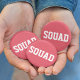 Identifizieren Sie Ihre Werft mit diesen niedlichen Korallenrosa-Buttons! Das Design zeichnet sich durch "SQUAD" in weißer Schrift im Kollegialstil aus. Ideal für Junggeselinnen-Abschied, Brautmädchen und Freunde.
