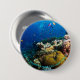 Ein cooler Knopf, der eine Vielzahl der tropischen Fische schwimmen über einem bunten Korallenriff kennzeichnet. Der Schuss wurde bei Steves Bommie auf Australiens Great Barrier Reef genommen.