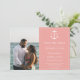 Dieses Nautical Monogram Foto Ankündigung Datum freihalten mit einem einfachen Textdesign, einem einfachen nautischen Anker für die Braut und Bräutigam Monogramm in einem modernen umrissenen Kasten, gewartet für Ihr Foto und Ihre Hochzeitsdetails, um sich anzupassen. Zusätzliche Farben sind mit diesem Design verfügbar. Ideal für Paare, die eine Hochzeit zum Thema Meer veranstalten.